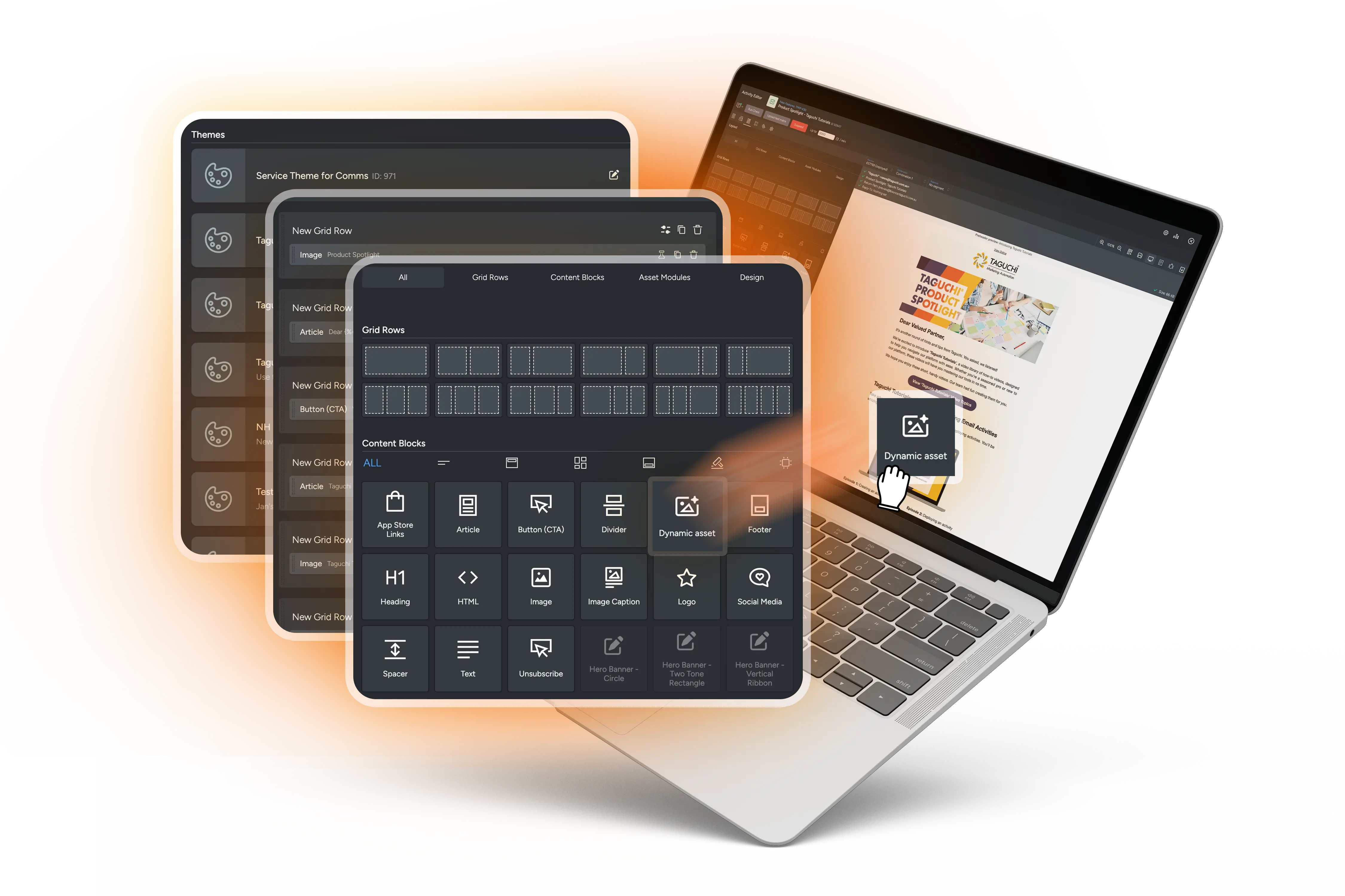 Think you need a designer or developer to create sleek, on-brand campaigns? With Taguchi, you don’t. Our intuitive drag-and-drop editor is built for every skill level—whether you’re an expert or just getting started, you can piece together campaigns using content blocks, images, text, and even video elements.
