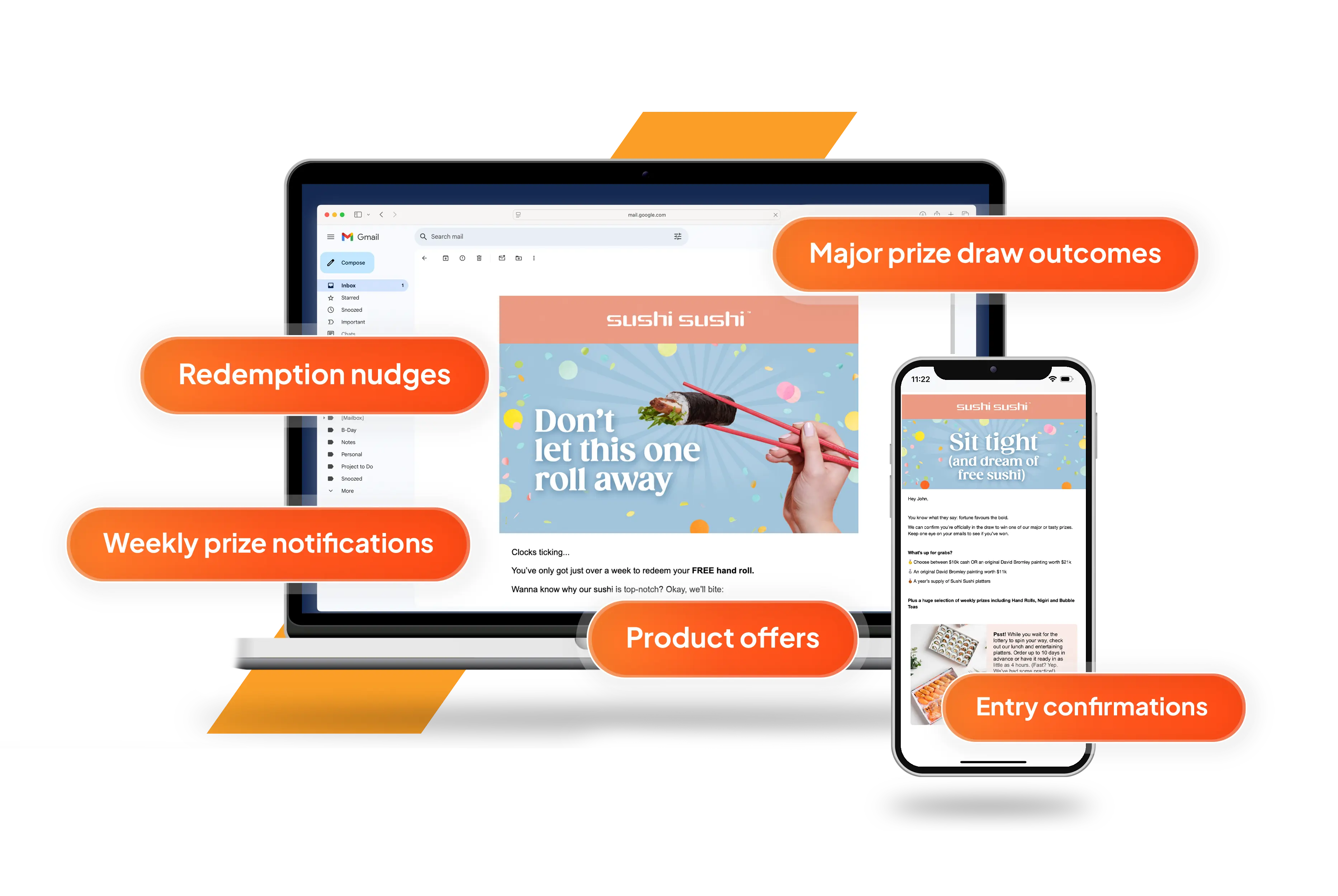 The campaign offered minor and major prizes to maintain momentum. Weekly prizes included vouchers for hand rolls, nigiri and bubble teas, while the major draw offered a choice between a huge cash prize or an original painting artwork, with two more secondary prizes. Additionally, unsuccessful weekly winners were also sent product offers to keep them engaged. Winners were drawn using Taguchi’s in-platform randomisation engine, ensuring a fair and legally compliant outcome.