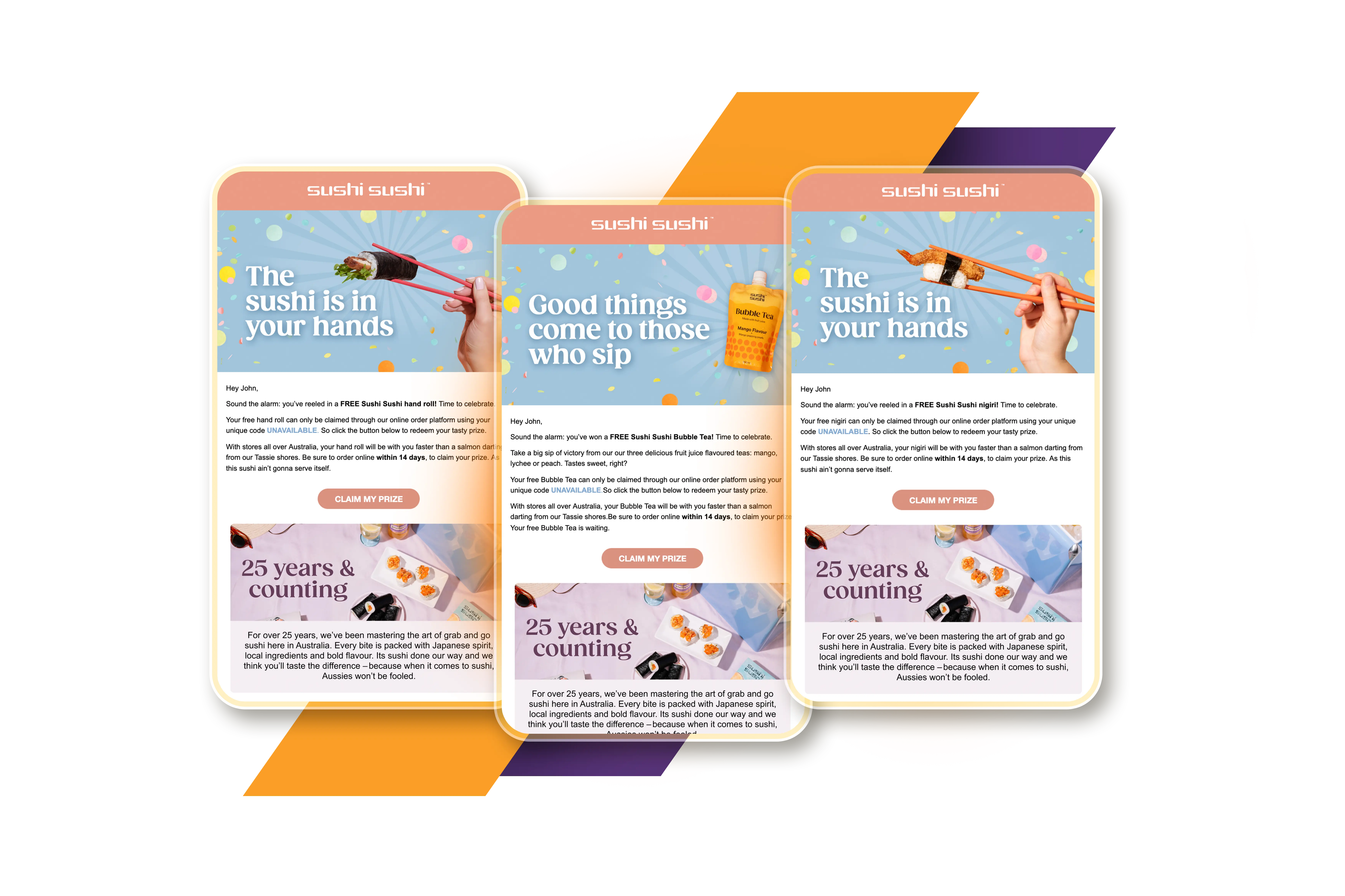 Behind the scenes, however, this campaign became part of Sushi Sushi’s onboarding with Taguchi and the foundation of a full-scale CRM system—designed to gather clean, structured data and trigger automated, personalised communications from day one.